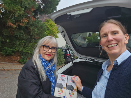 Spende für Pickup4ukraine Mission completed: Anfang Oktober fährt ein Konvoi mit 18, von Spendengeldern finanzierten, Fahrzeugen in die Ukraine. Sie sind bepackt mit medizinischem Material und selbst hergestellten Kerzen für den Fronteinsatz. Was noch fehlte waren Einmalhandschuhe - diese spendet die BIA: Erika Ebel von der BIA übergab an Annette Ehrnsperger einen ganzen Kofferraum voll mit 6000 Einmalhandschuhen für Pickup4ukraine. Wer sich beteiligen möchte, kann gerne einen Pack im Drogeriemarkt oder einer Apotheke kaufen und in unserem Laden abgeben. Wir leiten sie weiter!